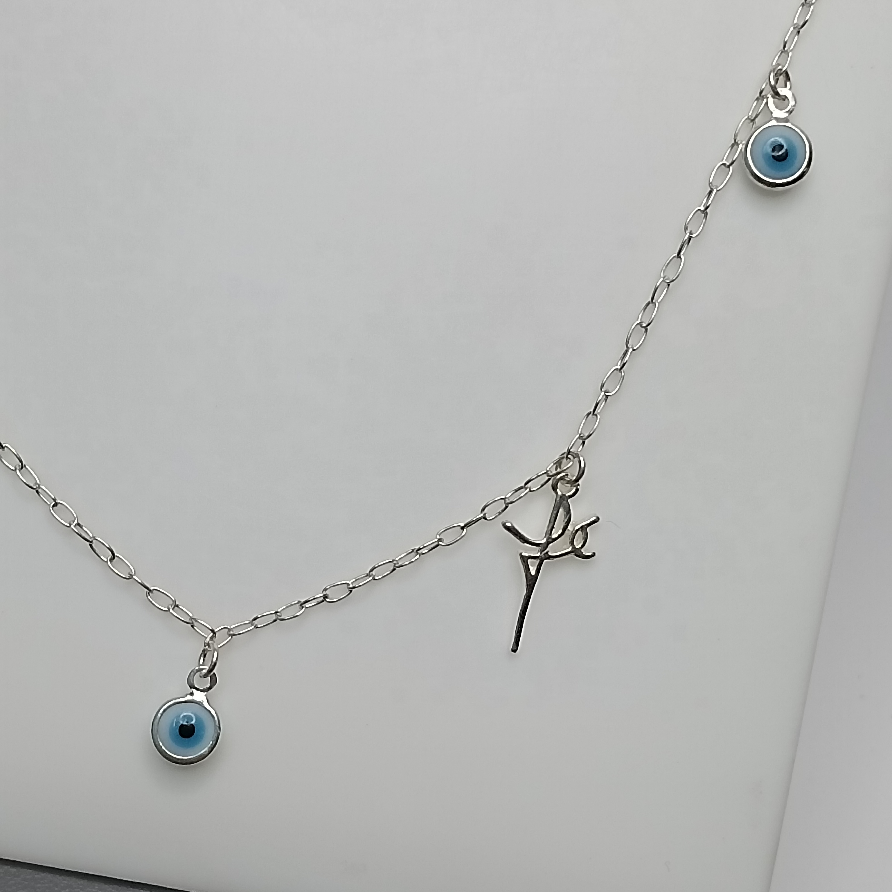 Gargantilha De Prata Choker Olho Grego E Fé Pendente Fio Cod:G2-18