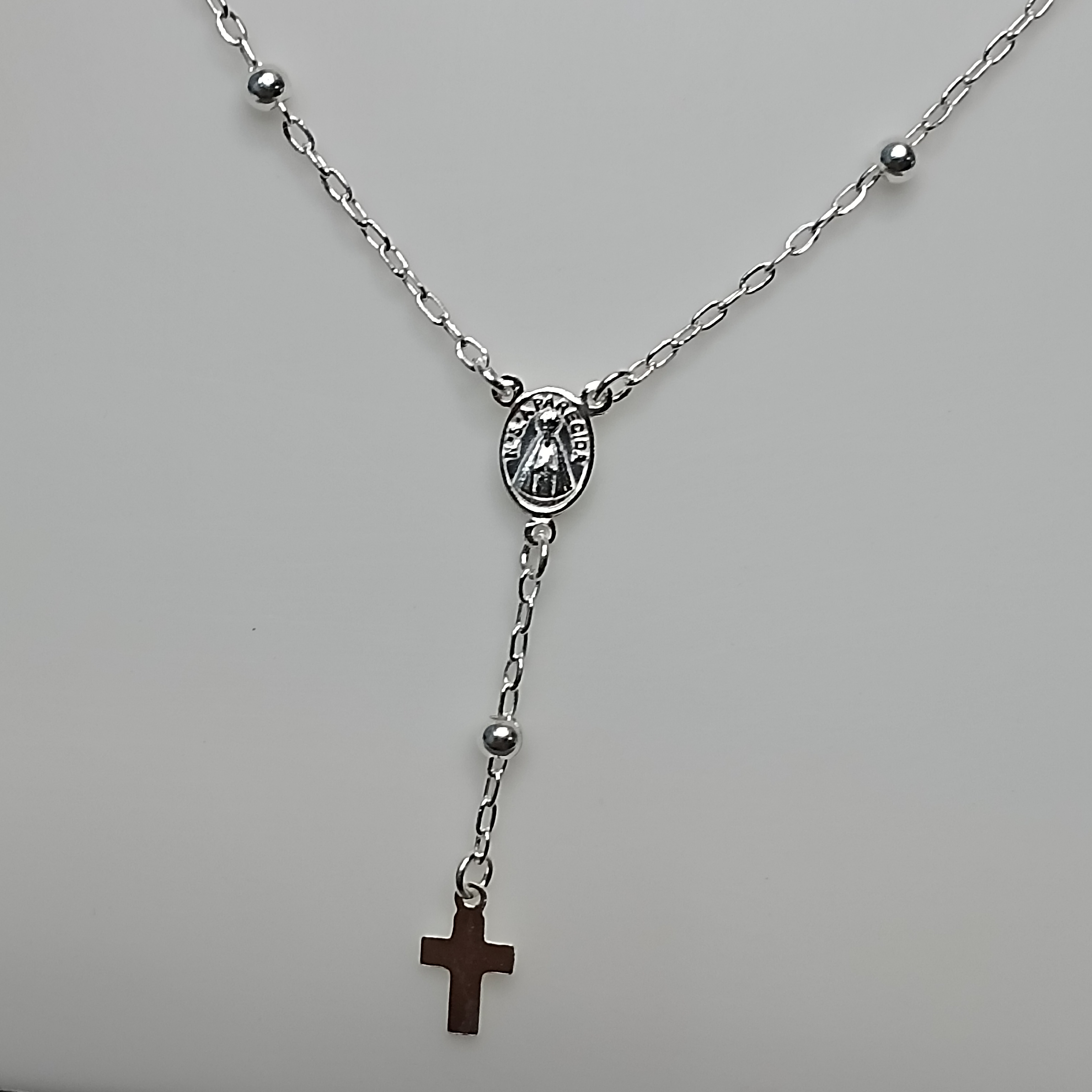 Gargantilha De Prata Escapulario São Jorge Com 6 Bolinhas 3mm 65cm Cod:G4-03