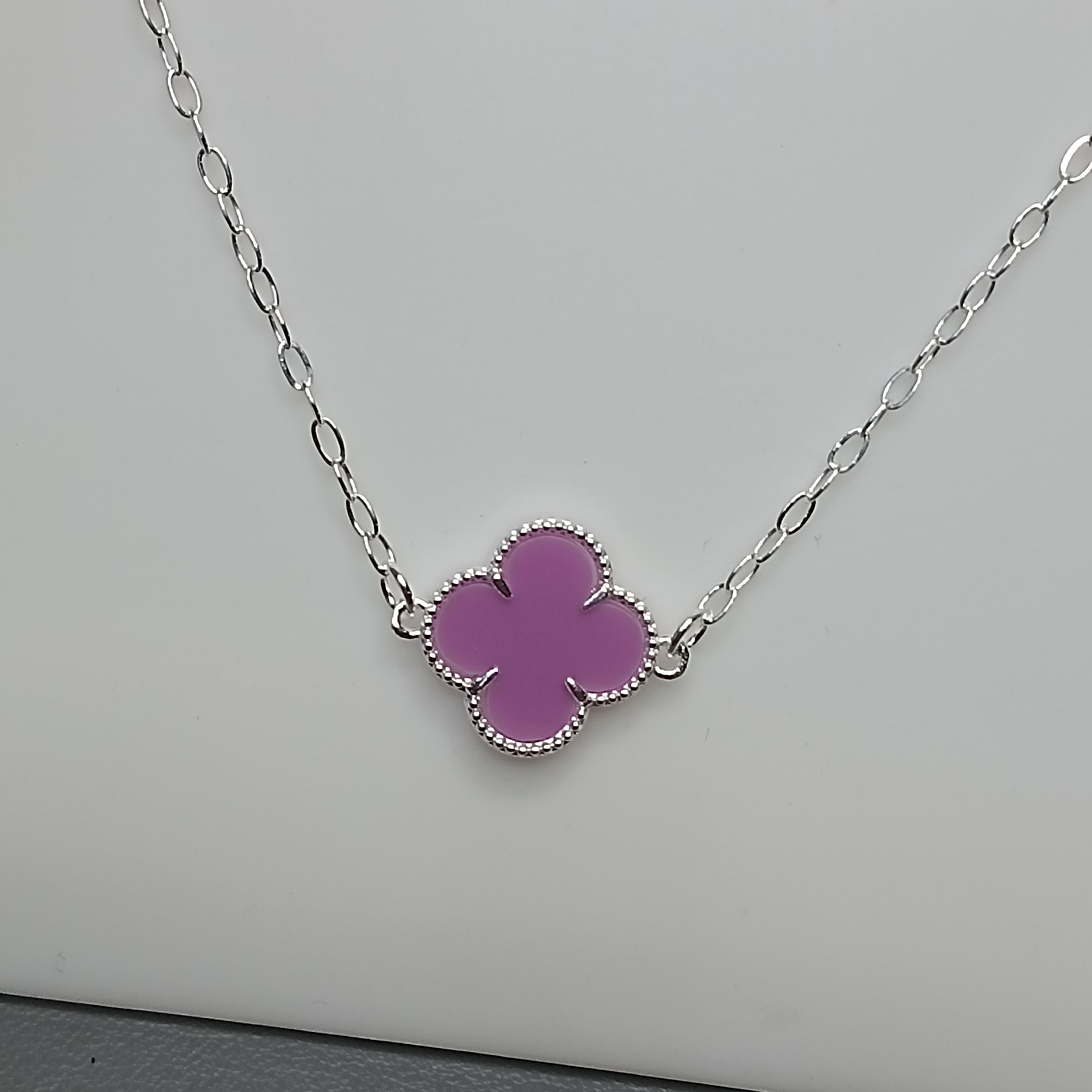 Gargantilha De Prata Trevo Pequeno Verde Lapidado Meio 4 Zirconia Fio 45cm Cod:MD