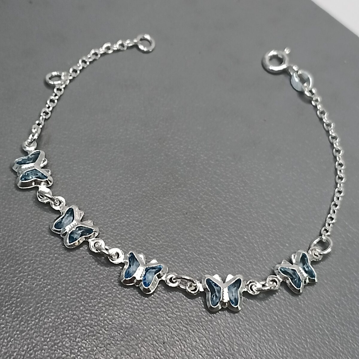 Pulseira De Prata Infantil 5 Zirconia Borboleta Azul Claro Meio K192/54