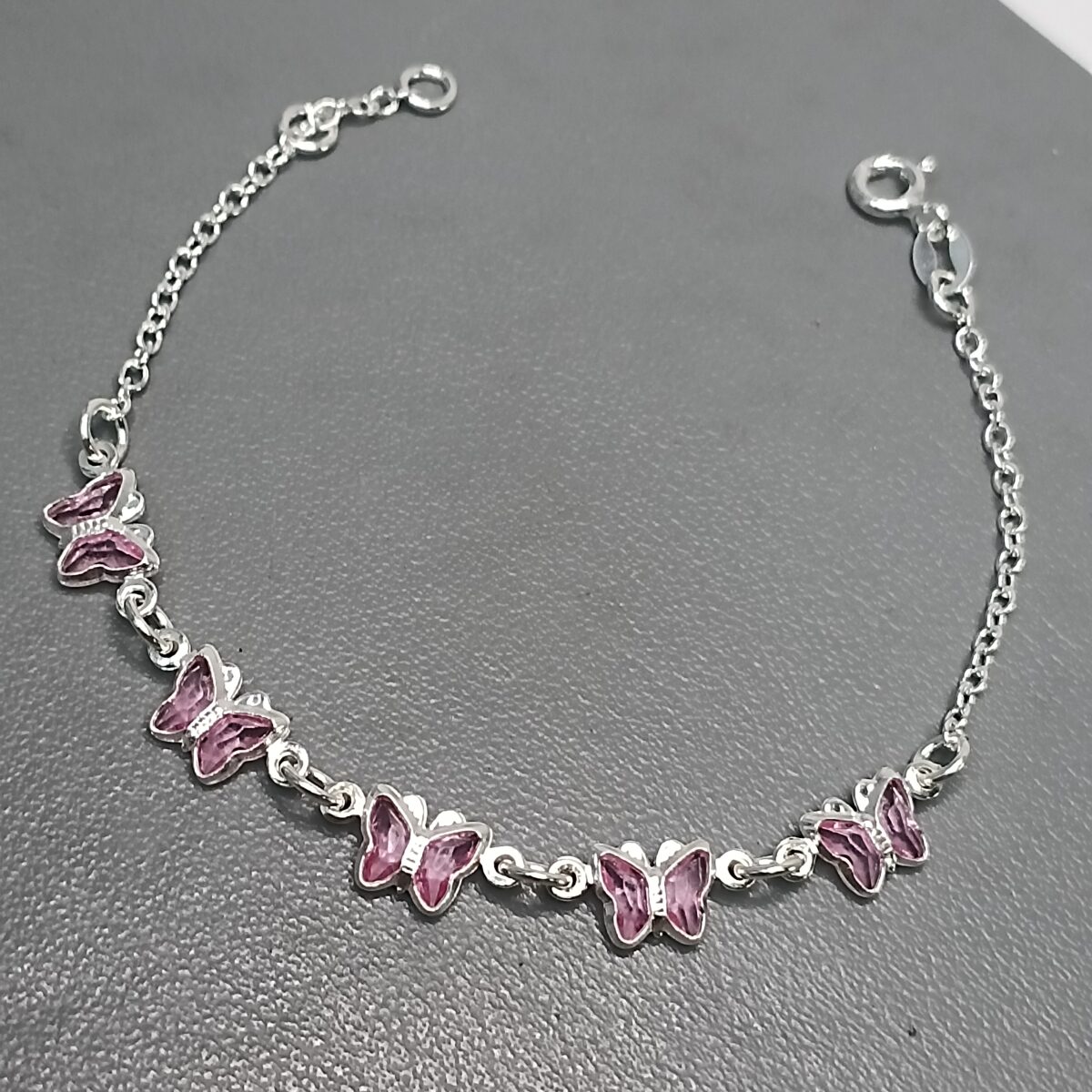 Pulseira De Prata Infantil 5 Zirconia Borboleta Rosa Meio K192/54