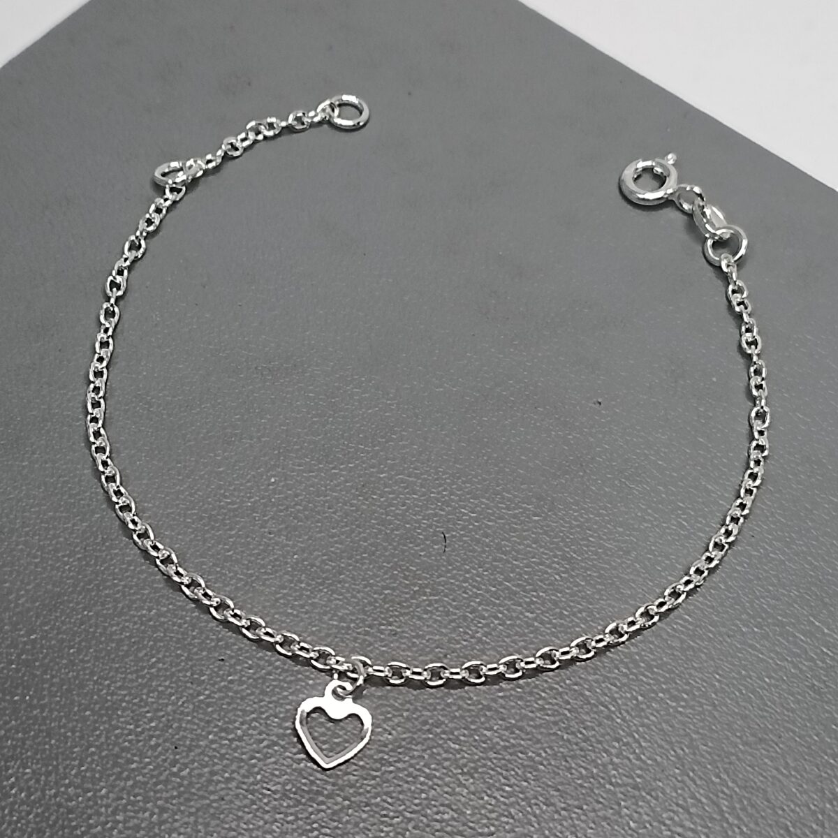 Pulseira De Prata Infantil Coração Vazado Pequeno Pendente Meio K108/54