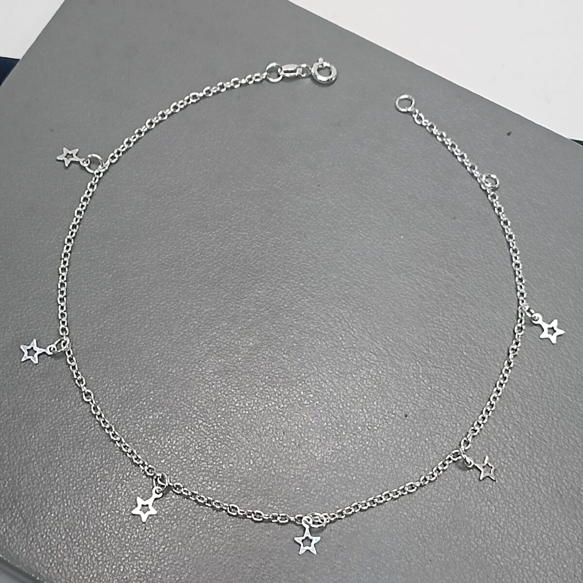 Tornozeleira De Prata 6 Estrela Vazada Pequena Pendente Fio K180/54