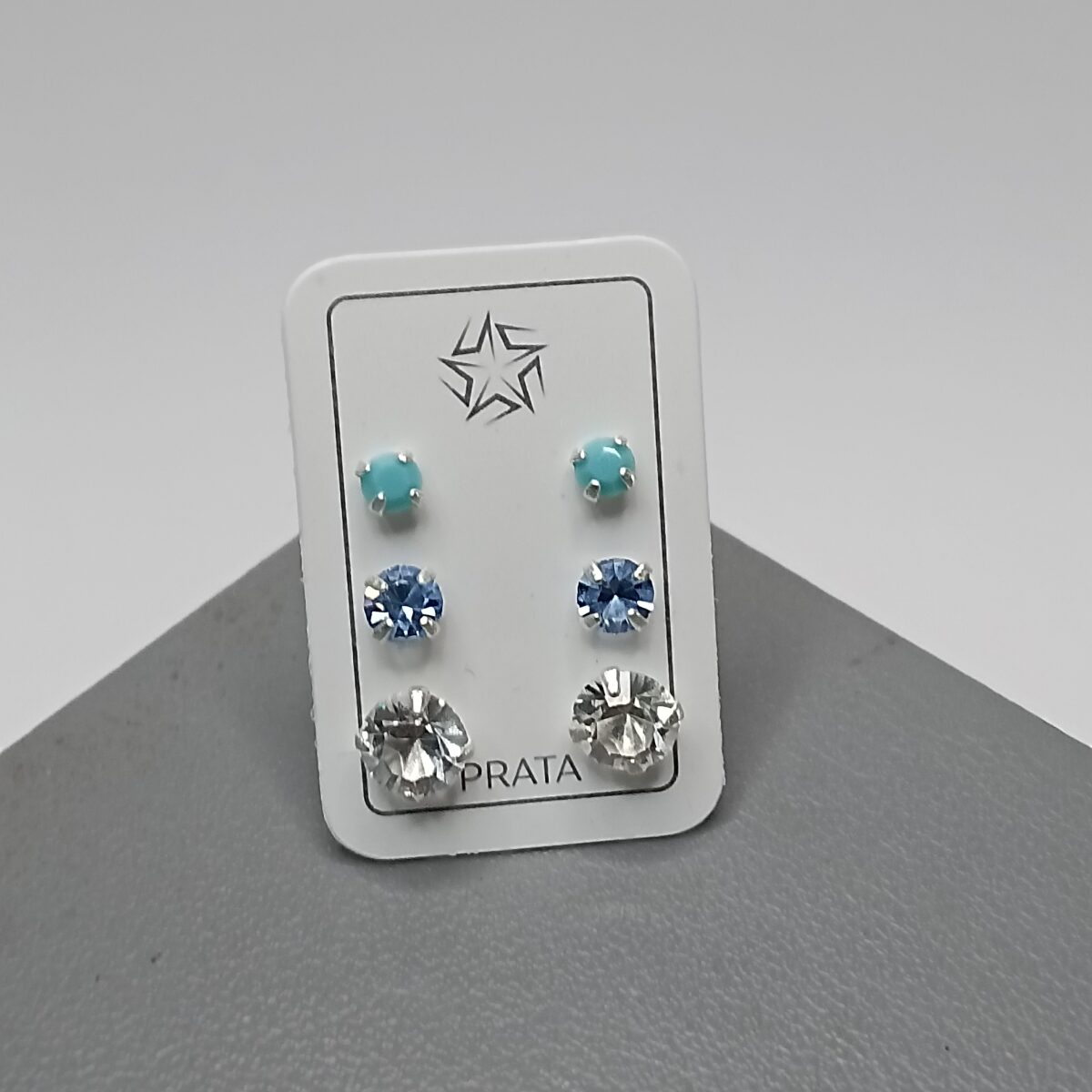 Trio De Prata Zirconia Azul Tiffany, Azul Claro , Transparente K90/51