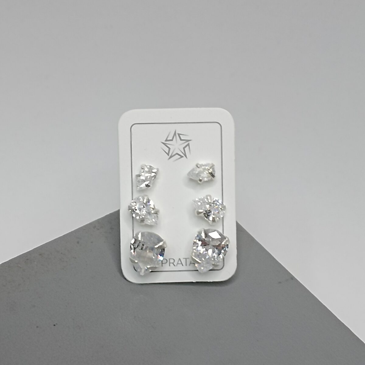 Trio De Prata Zirconia Gota Cod:TRI/7